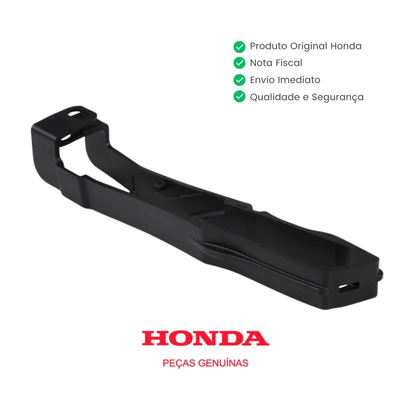 A guia da corrente de transmissão original Honda é responsável por manter a corrente corretamente alinhada durante o funcionamento da motocicleta, reduzindo vibrações, evitando desgaste irregular e contribuindo para maior durabilidade do conjunto de transmissão. Fabricada conforme o padrão original de fábrica, garante encaixe perfeito, resistência adequada e funcionamento correto, sem necessidade de adaptações.