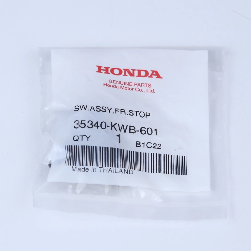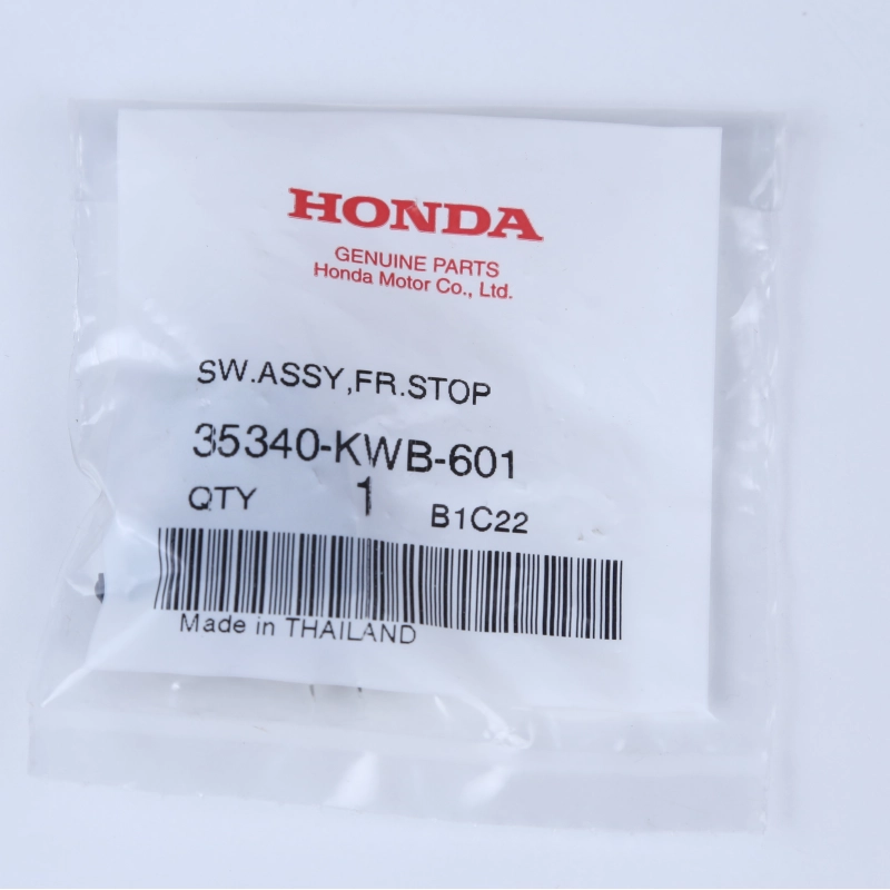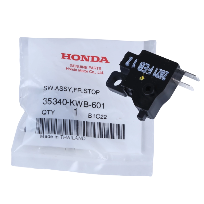 O interruptor de freio dianteiro original Honda é responsável pelo acionamento da luz de freio ao pressionar o manete, garantindo sinalização correta, maior segurança na condução e funcionamento preciso conforme o padrão original de fábrica. Produzido com materiais de alta qualidade, oferece encaixe perfeito, excelente durabilidade e total compatibilidade com o sistema elétrico original, sem necessidade de adaptações.