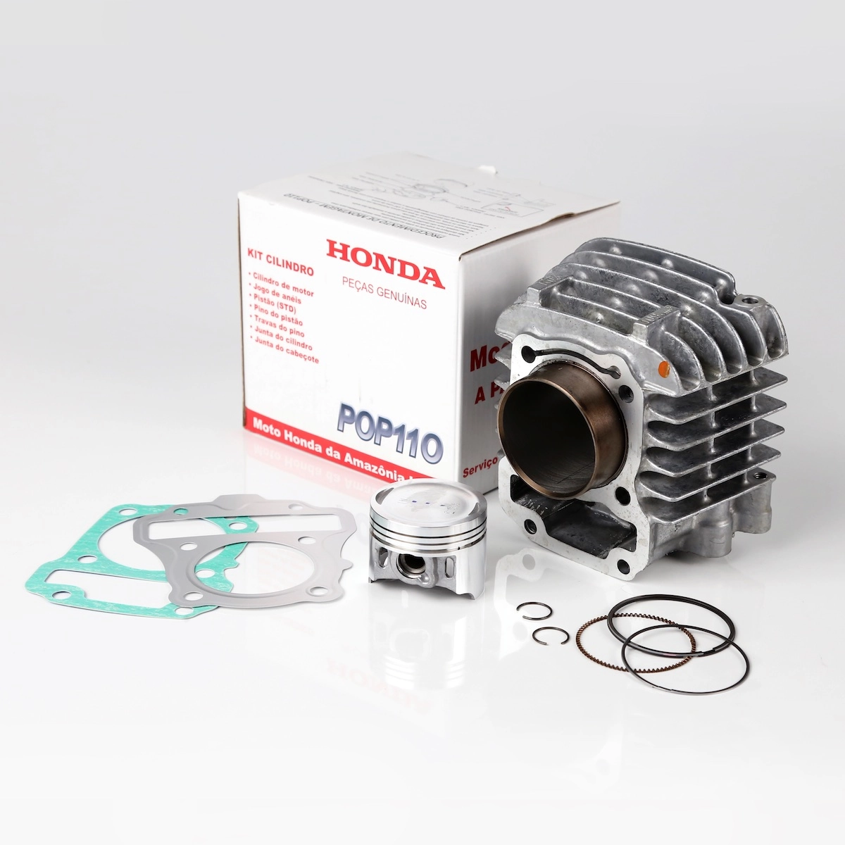 Kit completo de cilindro do motor para reposição original das linhas POP 110i e BIZ 110i. Todas as peças são novas e originais Honda, garantindo encaixe perfeito, durabilidade e desempenho de fábrica.