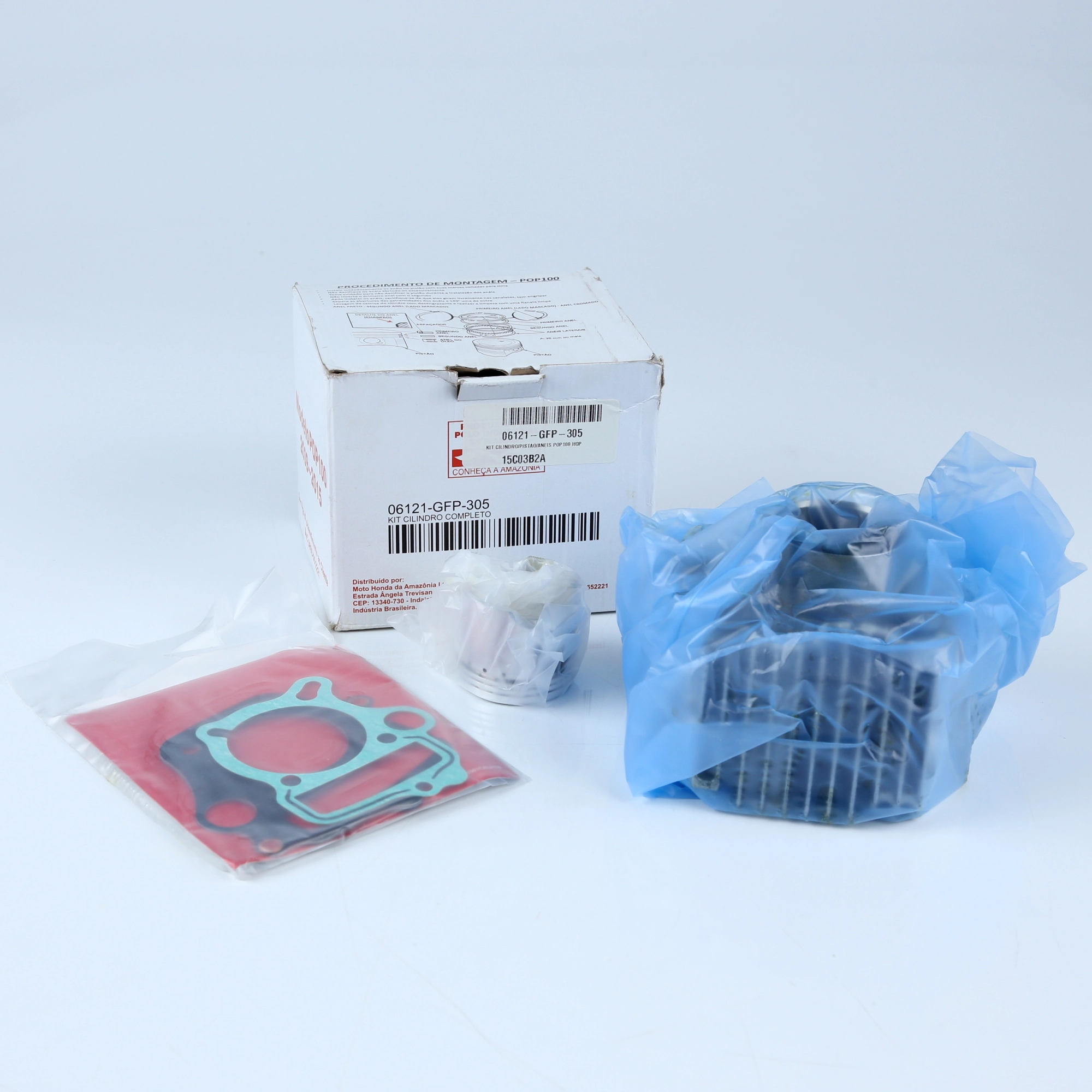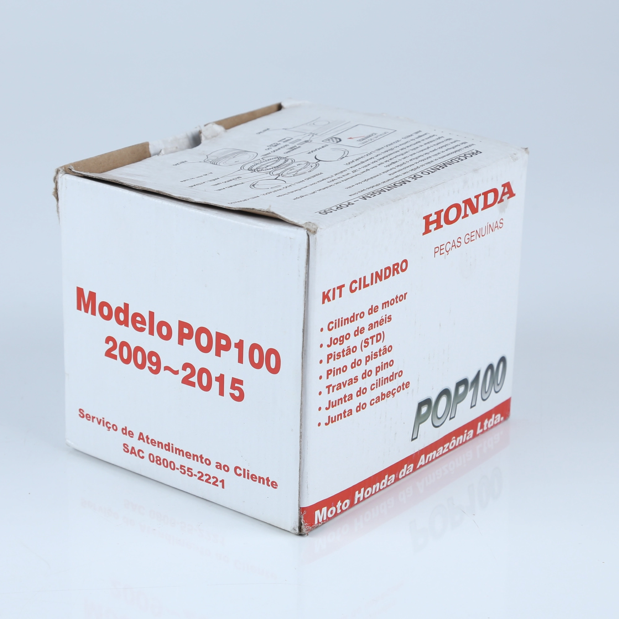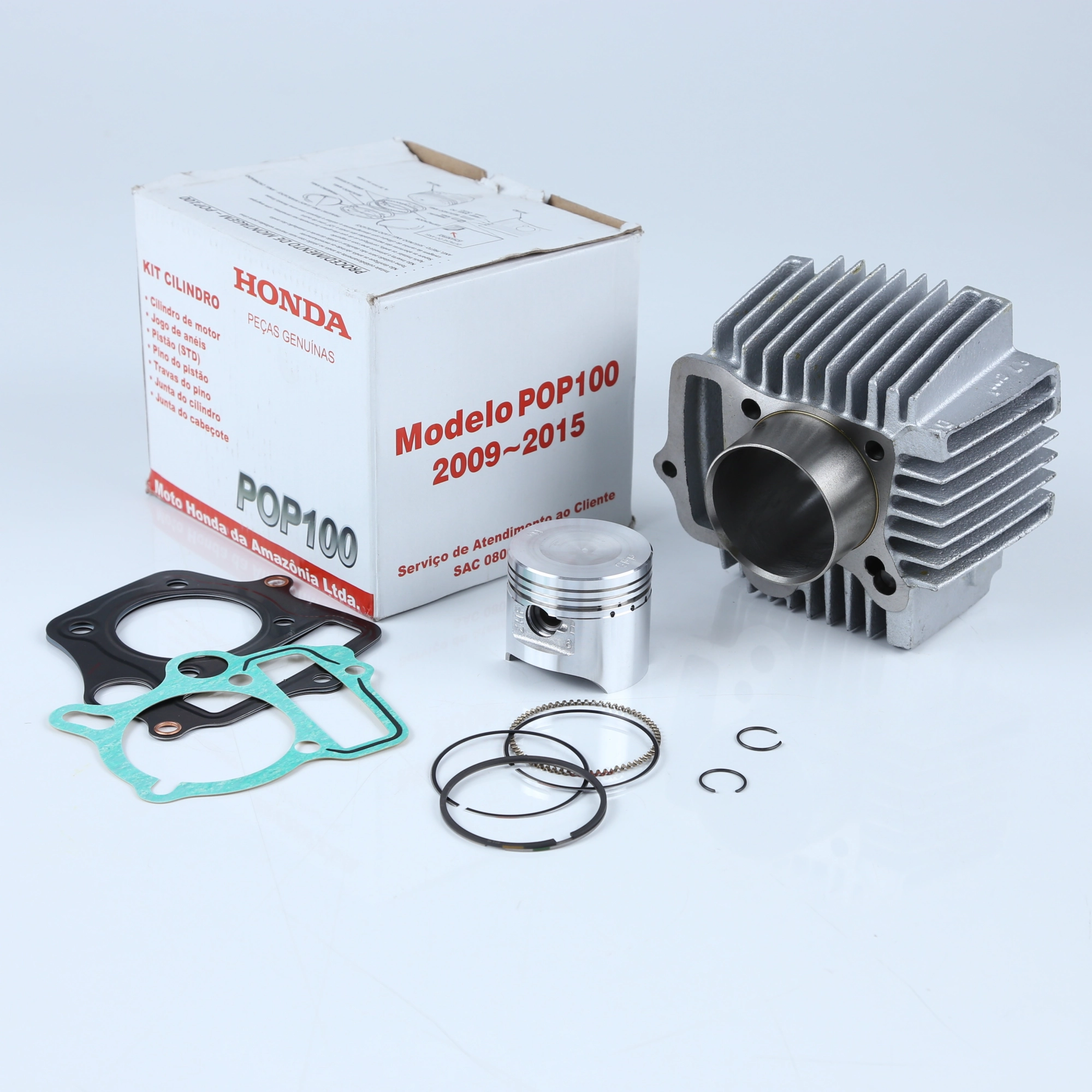 Kit completo de cilindro do motor para reposição original da linha POP 100. Todas as peças são novas e originais Honda, garantindo encaixe perfeito, durabilidade e desempenho conforme especificação de fábrica.