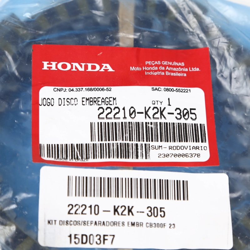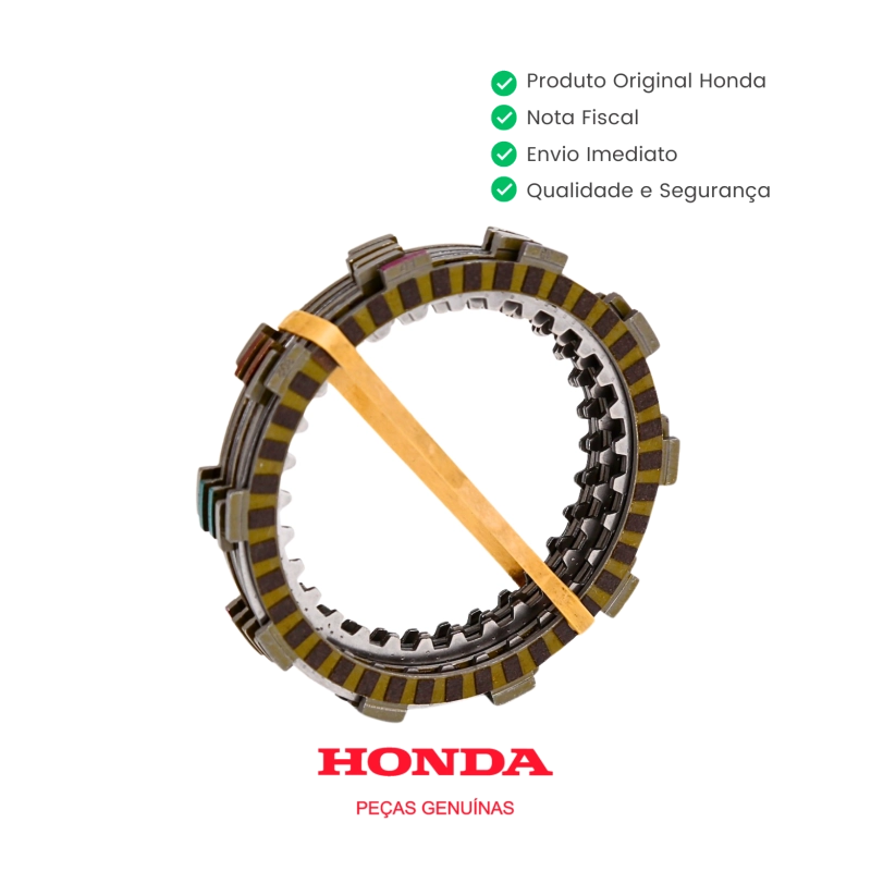 Kit de discos e separadores de embreagem original Honda, desenvolvido para garantir acoplamento preciso, engates suaves e o desempenho ideal do sistema de embreagem. Fabricado com materiais de alta resistência e conforme especificação da montadora, assegura durabilidade, eficiência e compatibilidade perfeita.