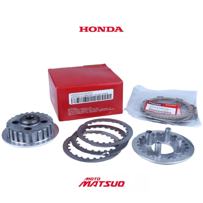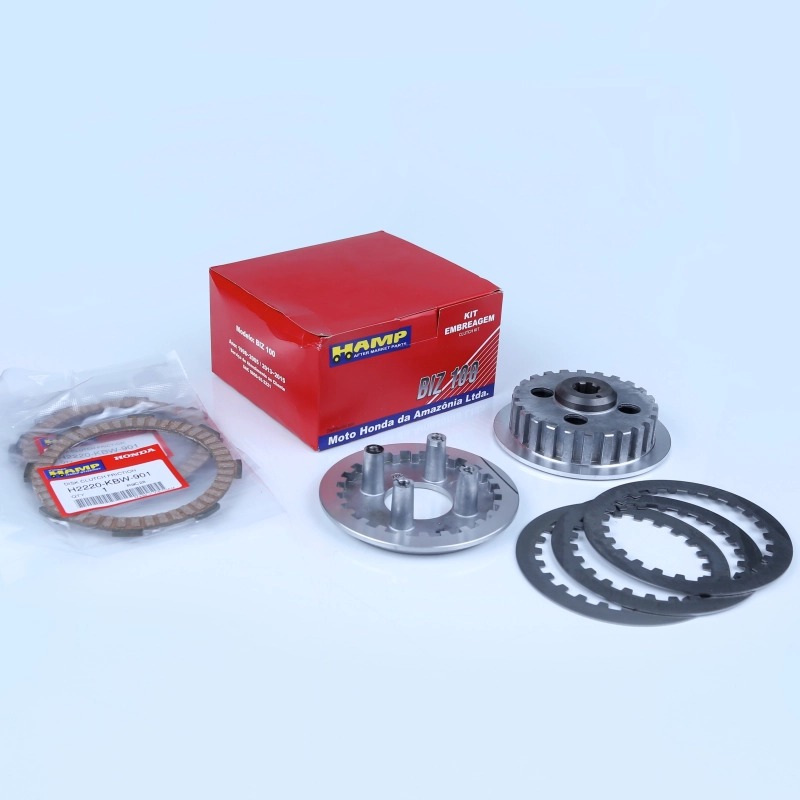 Kit de embreagem HAMP 100% original Honda, desenvolvido para reposição completa do conjunto de embreagem, garantindo funcionamento suave, engates precisos e transmissão de força eficiente conforme o padrão de fábrica. Ideal para manutenção corretiva, assegurando durabilidade, confiabilidade e conforto na pilotagem.