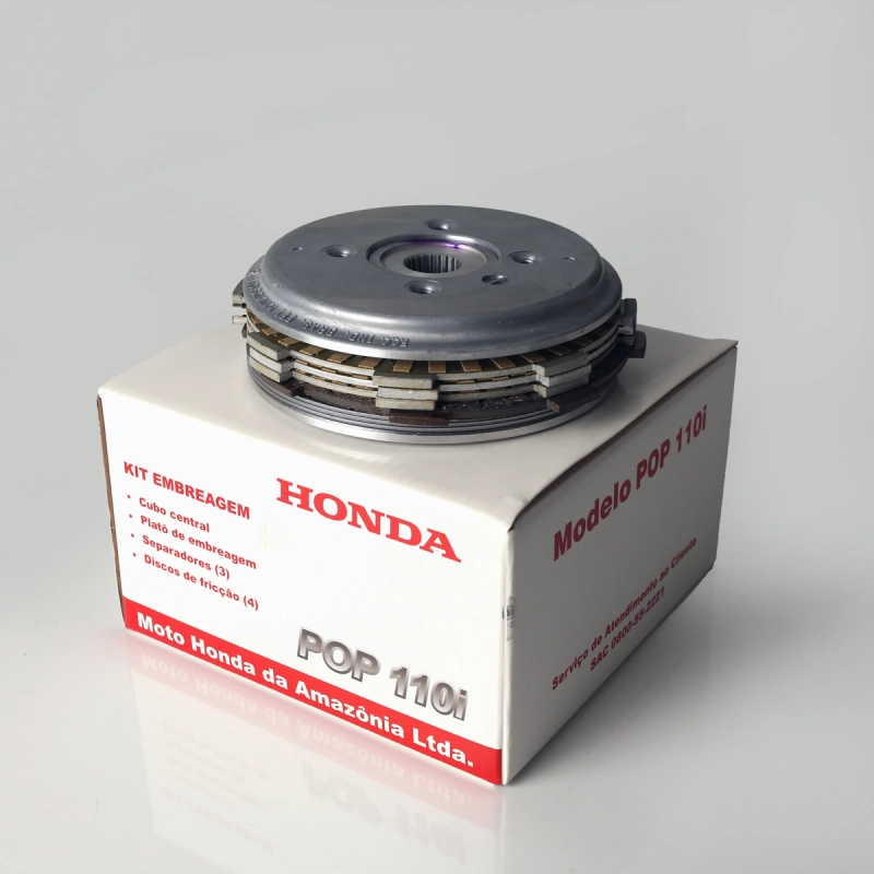 Kit de embreagem original Honda desenvolvido para garantir o funcionamento correto, durabilidade e desempenho da Pop 110i. Todos os componentes seguem o padrão de fábrica, proporcionando encaixe perfeito e mantendo a confiabilidade do sistema de transmissão.