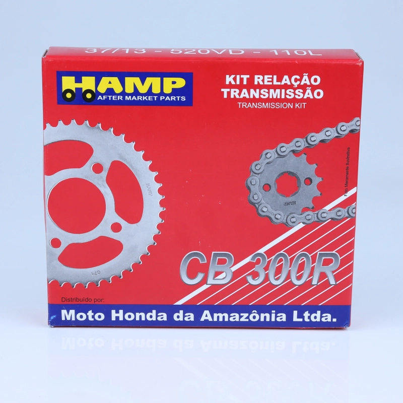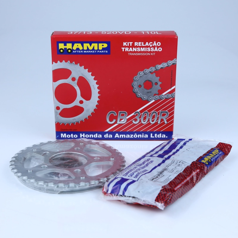 O kit relação Original Honda HAMP é composto por corrente, coroa e pinhão, sendo responsável pela transmissão de força do motor para a roda traseira. Desenvolvido conforme o padrão de fábrica, garante desempenho eficiente, maior durabilidade e segurança na pilotagem.
