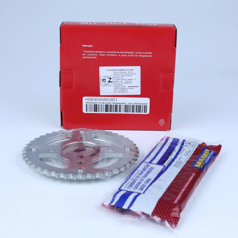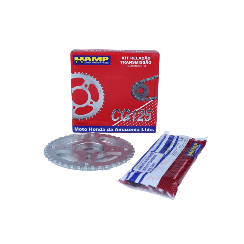 O kit relação Original Honda HAMP é composto por corrente, coroa e pinhão, sendo responsável pela transmissão de força do motor para a roda traseira. Desenvolvido conforme o padrão de fábrica, garante desempenho eficiente, maior durabilidade e segurança na pilotagem.
