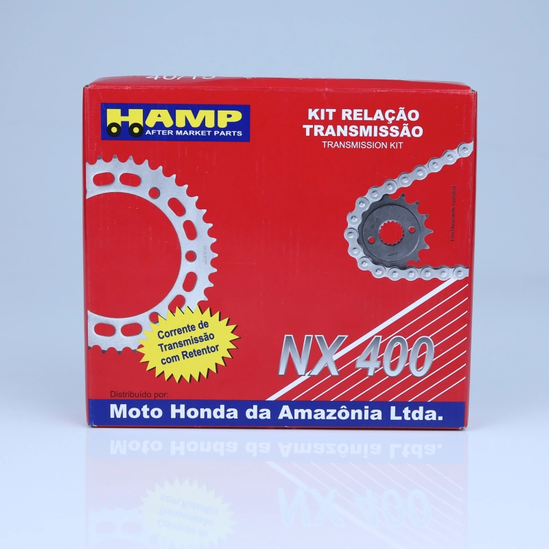 O kit relação Original Honda HAMP é composto por corrente, coroa e pinhão, sendo responsável pela transmissão de força do motor para a roda traseira. Desenvolvido conforme o padrão de fábrica, garante desempenho eficiente, maior durabilidade e segurança na pilotagem.