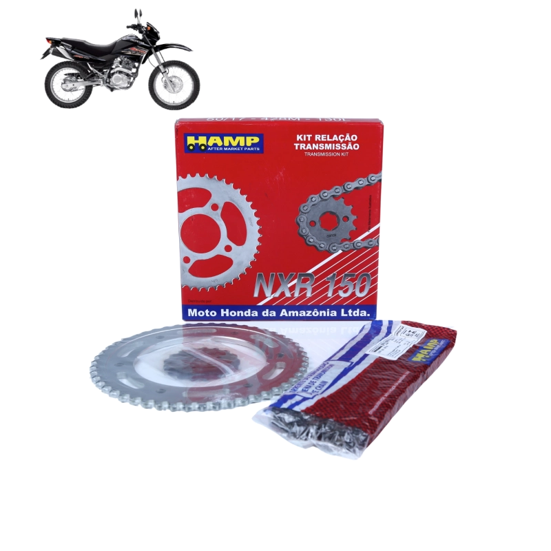 O kit relação original Honda Hamp é essencial para garantir o perfeito funcionamento da transmissão da motocicleta, proporcionando segurança, desempenho e durabilidade no uso diário. Produzido com o padrão de qualidade Honda, oferece alta resistência ao desgaste e encaixe preciso, mantendo as características originais da moto.