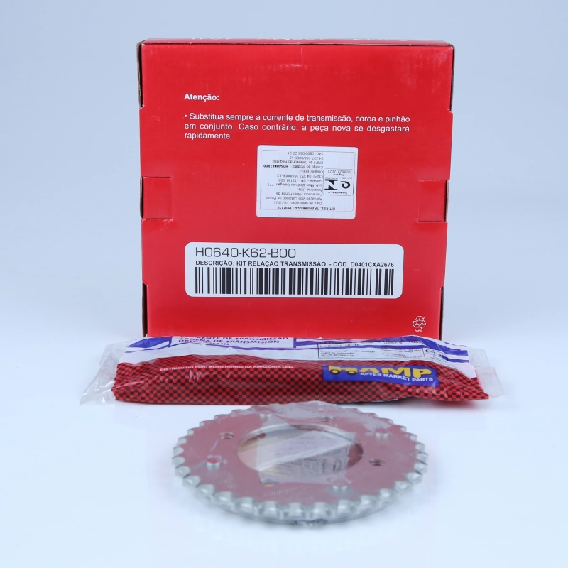 O kit relação Original Honda HAMP é composto por corrente, coroa e pinhão, sendo responsável pela transmissão de força do motor para a roda traseira. Desenvolvido conforme o padrão de fábrica, garante desempenho eficiente, maior durabilidade e segurança na pilotagem.