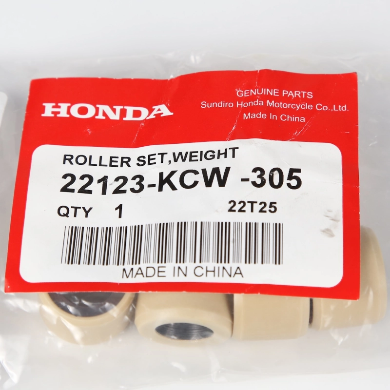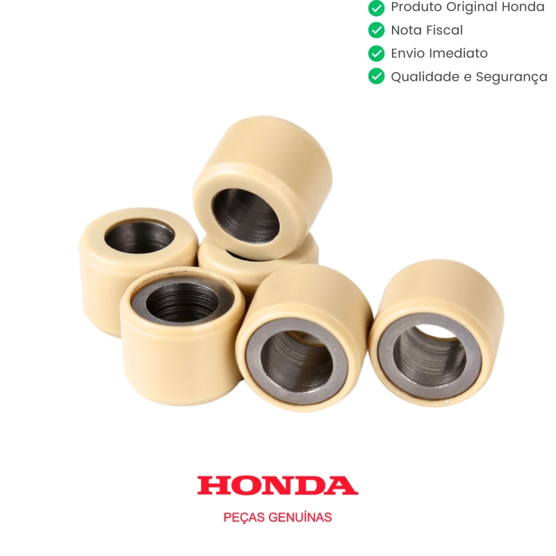Kit de roletes original Honda, peça fundamental para o funcionamento adequado do sistema CVT da Elite 125. Os roletes são responsáveis por atuar no variador, proporcionando aceleração progressiva, desempenho estável e máxima eficiência da transmissão automática.