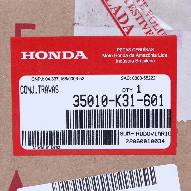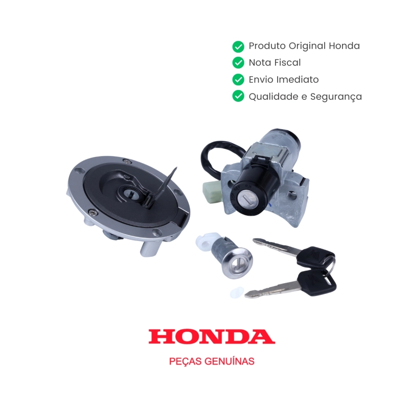 O kit de travas com chave de ignição original Honda é responsável pelo acionamento correto da motocicleta e pela segurança do sistema de ignição. Produzido conforme o padrão de fábrica da Honda, garante encaixe perfeito, funcionamento preciso e total compatibilidade com o conjunto original, sem necessidade de adaptações.