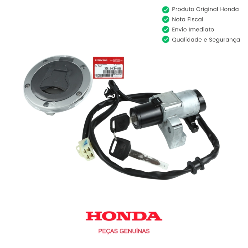 O kit de travas com chave de ignição original Honda é responsável pelo acionamento correto da motocicleta e pela segurança do sistema de ignição. Desenvolvido conforme o padrão de fábrica da Honda, garante encaixe perfeito, funcionamento preciso e total compatibilidade com o conjunto original, sem necessidade de adaptações.