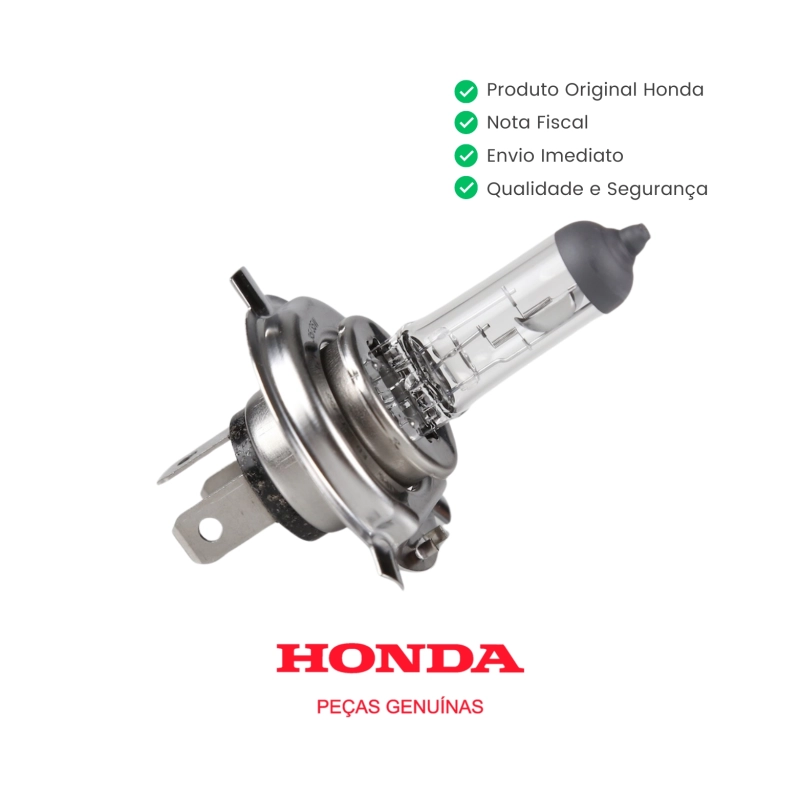 A lâmpada de farol original Honda H4 12V 35/35W garante iluminação eficiente, segurança e total compatibilidade com o sistema elétrico original da motocicleta. Produzida dentro dos padrões da Honda, oferece foco correto, boa durabilidade e funcionamento confiável, sem risco de sobrecarga elétrica.