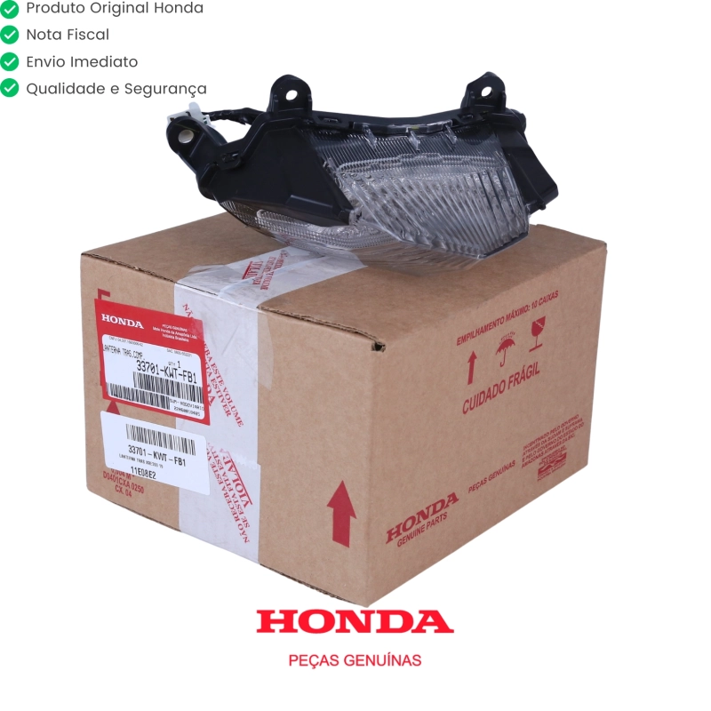 A lanterna traseira original Honda garante iluminação eficiente, maior segurança no trânsito e preservação total do padrão original da motocicleta. Produzida conforme as especificações de fábrica, oferece encaixe perfeito, alta durabilidade e excelente acabamento, sem necessidade de adaptações.