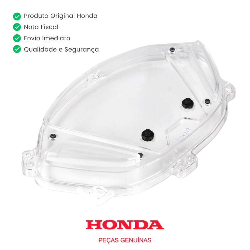 A lente acrílica do painel original Honda é responsável por proteger o conjunto de instrumentos, garantindo excelente visibilidade, transparência e preservação contra poeira, umidade e pequenos impactos. Produzida conforme o padrão original de fábrica, mantém a estética e a durabilidade do painel, sem necessidade de adaptações.