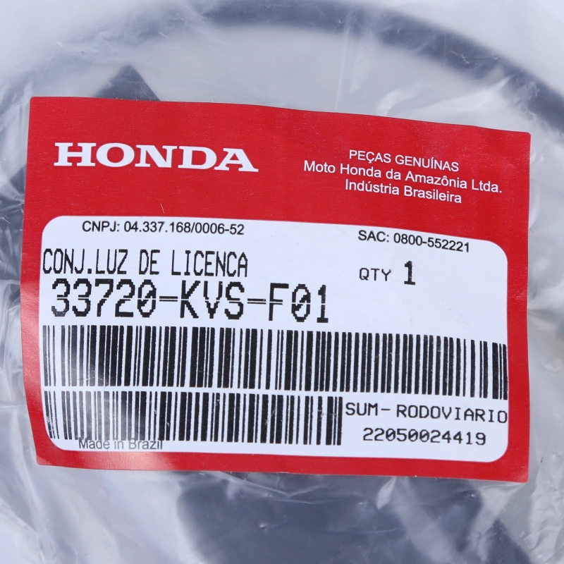 A luz de placa (olho de gato) original Honda garante iluminação adequada da placa, segurança e conformidade com as normas de trânsito, além de preservar o padrão original da motocicleta. Fabricada com material de alta qualidade e acabamento de fábrica, proporciona encaixe perfeito, excelente durabilidade e funcionamento correto, sem necessidade de adaptações.
