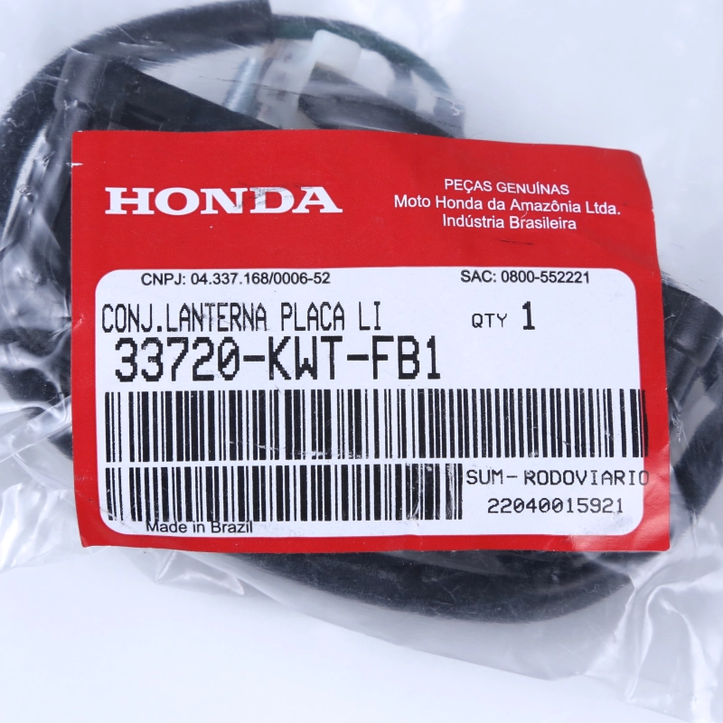 A luz de placa original Honda garante iluminação adequada da placa, atendendo às normas de trânsito e preservando o padrão original da motocicleta. Fabricada com material de alta qualidade e acabamento de fábrica, oferece encaixe perfeito, excelente durabilidade e funcionamento correto, sem necessidade de adaptações.