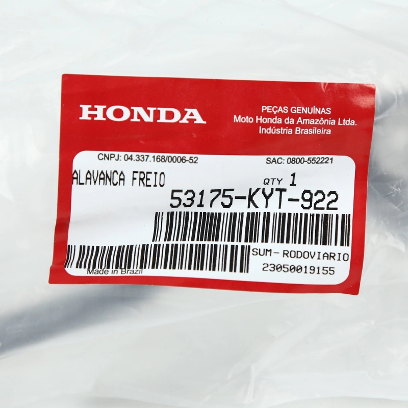 O manete de freio dianteiro original Honda é responsável pelo acionamento seguro e preciso do sistema de freio, garantindo controle, conforto e confiabilidade durante a pilotagem. Peça genuína Honda, desenvolvida conforme o padrão de fábrica, assegurando encaixe perfeito, alta durabilidade e preservação da originalidade da motocicleta.