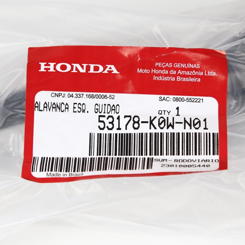 O manete de freio traseiro original Honda é responsável pelo acionamento correto do sistema de frenagem traseira, garantindo segurança, controle e resposta eficiente durante a pilotagem. Peça genuína Honda, desenvolvida conforme os padrões de fábrica, proporcionando encaixe perfeito, alta durabilidade e manutenção da originalidade da motocicleta.