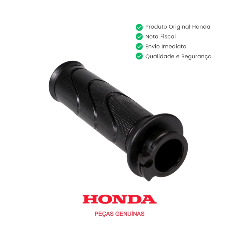 A manopla direita com tubo do acelerador original Honda é responsável pelo acionamento correto do acelerador, garantindo resposta precisa, conforto na pilotagem e funcionamento suave do conjunto. Peça genuína Honda, desenvolvida com padrão de fábrica para perfeito encaixe, durabilidade e segurança no uso diário.