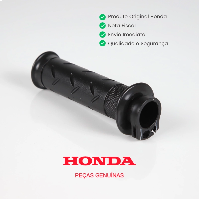A manopla direita com tubo do acelerador original Honda é responsável pelo acionamento correto do acelerador, garantindo resposta precisa, controle adequado e conforto na pilotagem. Peça genuína Honda, desenvolvida com padrão de fábrica para assegurar encaixe perfeito, durabilidade e funcionamento confiável no uso diário.