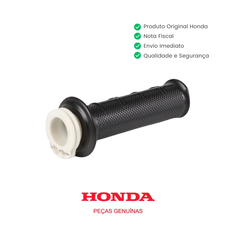 A manopla direita com tubo do acelerador original Honda é responsável pelo acionamento correto do acelerador, garantindo resposta precisa, controle adequado e conforto na pilotagem. Peça genuína Honda, desenvolvida com padrão de fábrica para assegurar encaixe perfeito, durabilidade e funcionamento confiável no uso diário.