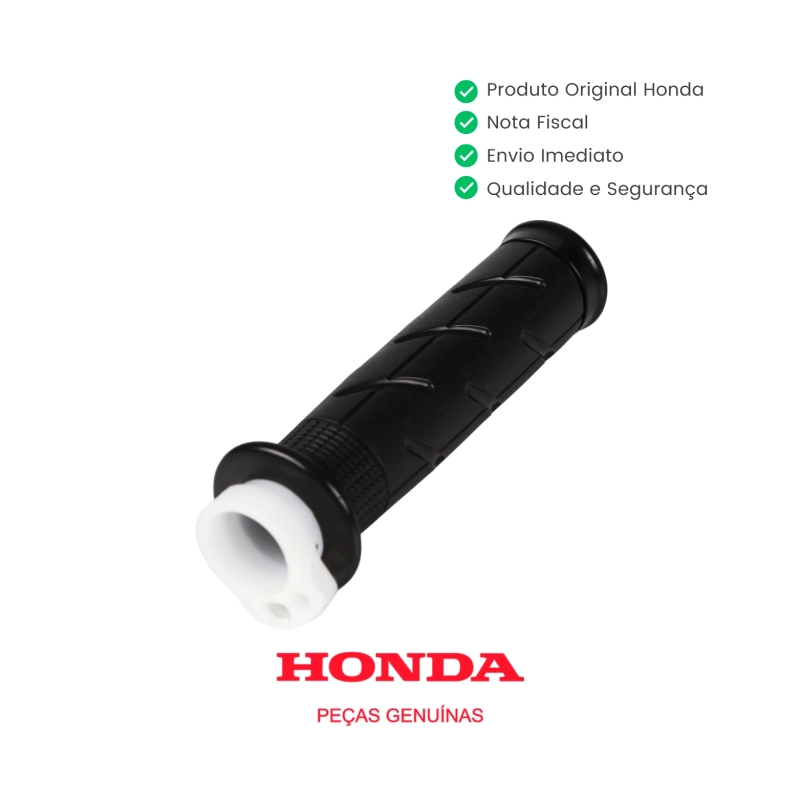 A manopla direita com tubo do acelerador original Honda é responsável pelo acionamento correto do acelerador, garantindo resposta precisa, conforto na pilotagem e funcionamento suave do conjunto. Peça genuína Honda, desenvolvida com padrão de fábrica para assegurar encaixe perfeito, durabilidade e segurança no uso diário.