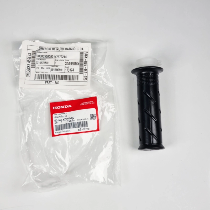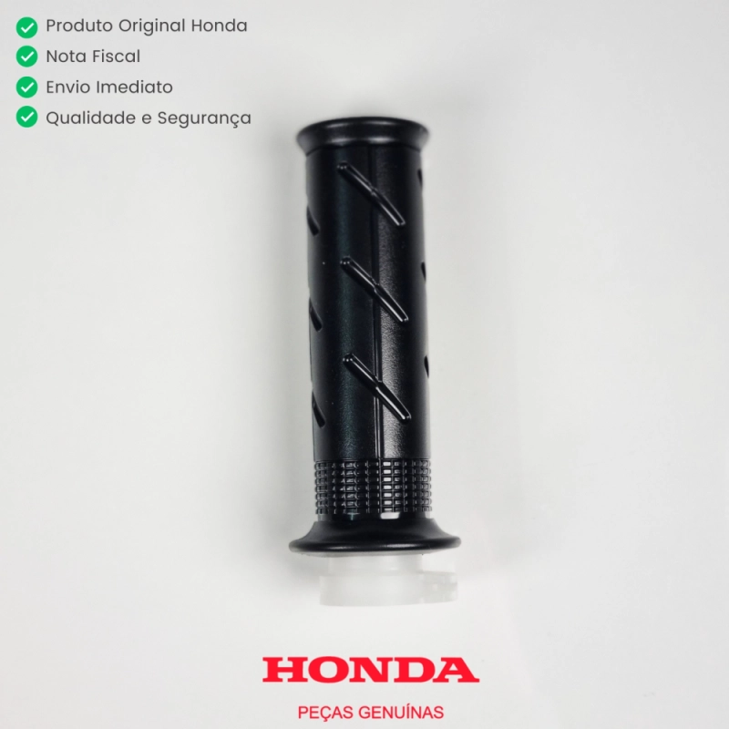A manopla direita original Honda é responsável pelo acionamento do acelerador, proporcionando conforto na pilotagem, resposta suave e controle preciso da motocicleta. Peça genuína Honda, desenvolvida com padrão de fábrica para garantir perfeito encaixe, durabilidade e excelente acabamento.