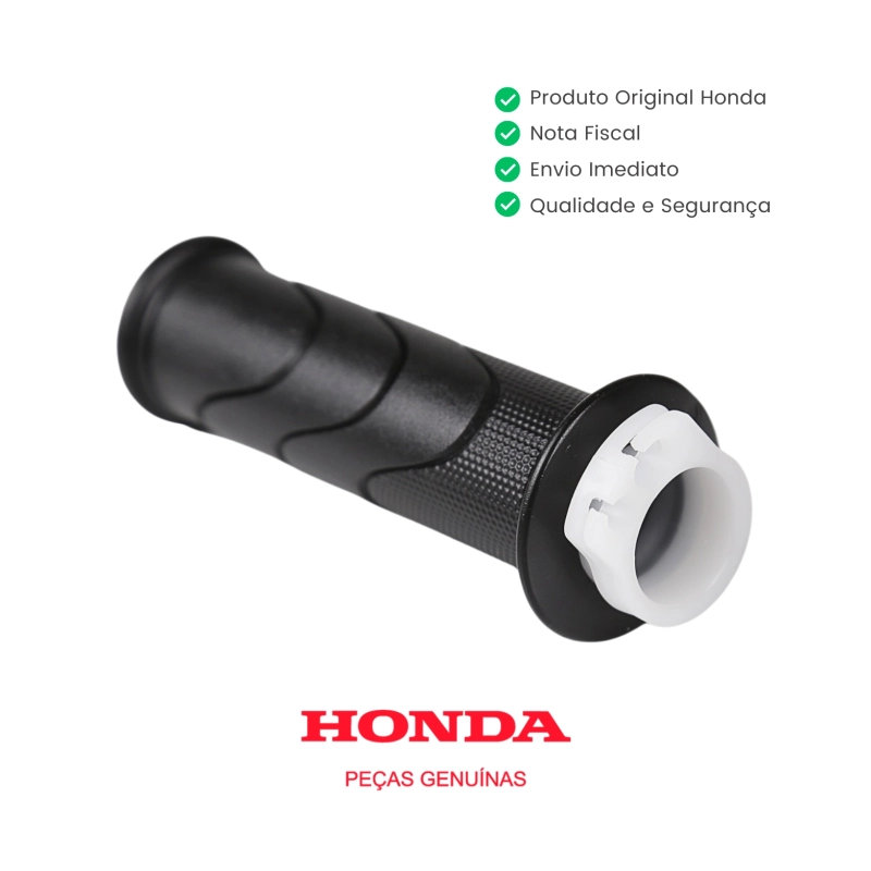 A manopla direita com tubo do acelerador original Honda é responsável pelo acionamento correto do acelerador, garantindo resposta precisa, conforto na pilotagem e funcionamento suave do conjunto. Peça genuína Honda, desenvolvida com padrão de fábrica para assegurar encaixe perfeito, durabilidade e segurança no uso diário.