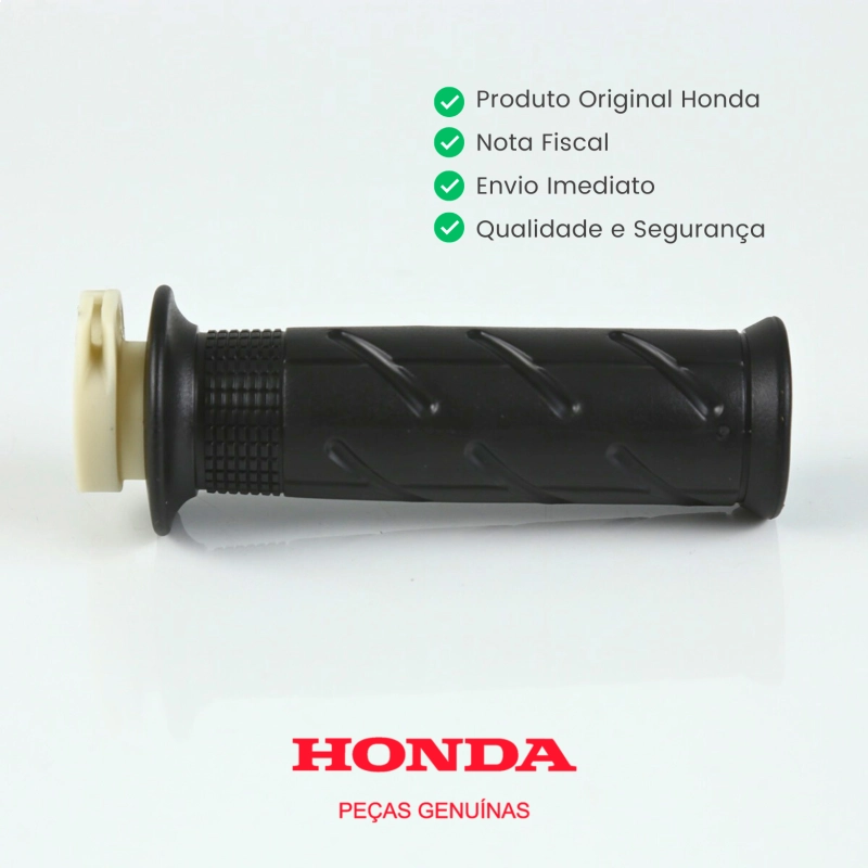 A manopla esquerda original Honda é responsável por proporcionar conforto, firmeza e segurança na pilotagem, garantindo pegada adequada e acabamento original do guidão. Peça genuína Honda, desenvolvida com padrão de fábrica para perfeito encaixe, durabilidade e excelente resistência ao uso diário.