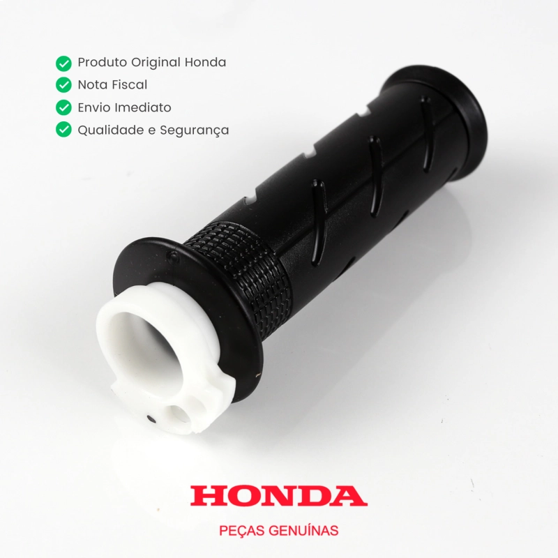 A manopla direita original Honda é responsável pelo acionamento do acelerador, proporcionando conforto, controle preciso e segurança durante a pilotagem. Peça genuína Honda, desenvolvida com padrão de fábrica para garantir encaixe perfeito, durabilidade e acabamento original da motocicleta.
