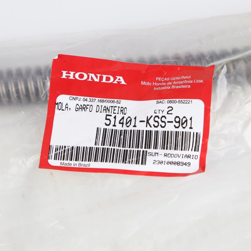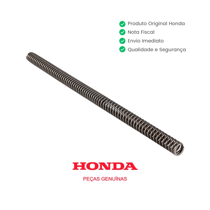 A mola da bengala dianteira original Honda é responsável por absorver impactos e manter o funcionamento correto da suspensão dianteira, garantindo conforto, estabilidade e segurança durante a condução da motocicleta. Fabricada conforme o padrão original de fábrica, oferece elasticidade adequada, alta resistência e preserva a dirigibilidade original, sem necessidade de adaptações.