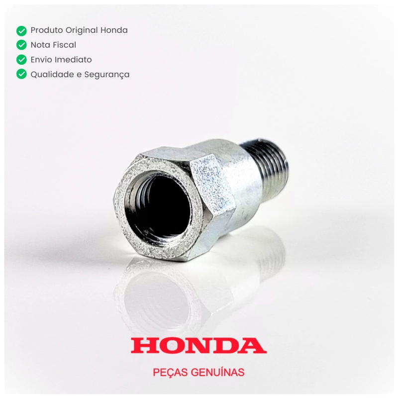 Parafuso adaptador do retrovisor 100% original Honda, utilizado para fixação correta do retrovisor conforme o padrão de fábrica. Peça essencial para garantir rosca correta, encaixe perfeito e segurança na instalação, evitando folgas ou danos ao conjunto do guidão.