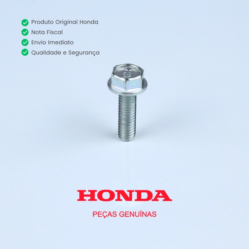 Parafuso flange 100% original Honda, utilizado na fixação do braço de articulação do pedal de câmbio, garantindo funcionamento correto, segurança na troca de marchas e fixação conforme padrão de fábrica. Peça desenvolvida com medidas e resistência exatas para reposição sem adaptações.