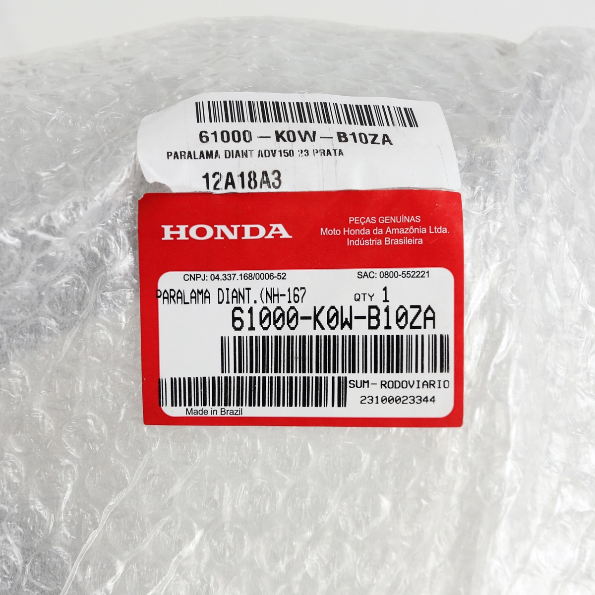 O paralama dianteiro original Honda é responsável por proteger a motocicleta contra respingos de água, lama e detritos, ajudando a preservar componentes mecânicos e garantindo maior segurança durante a pilotagem.