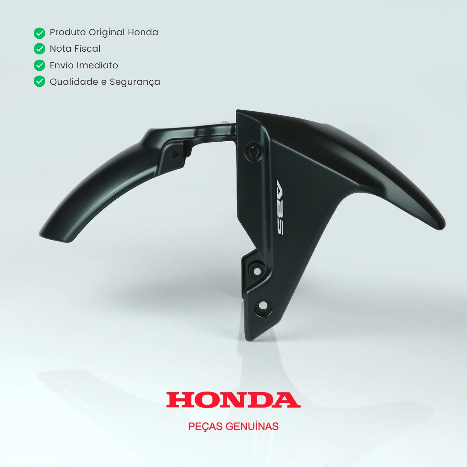 O paralama dianteiro original Honda é responsável por proteger a motocicleta contra respingos de água, lama e detritos, contribuindo para a conservação dos componentes e maior segurança durante a pilotagem.