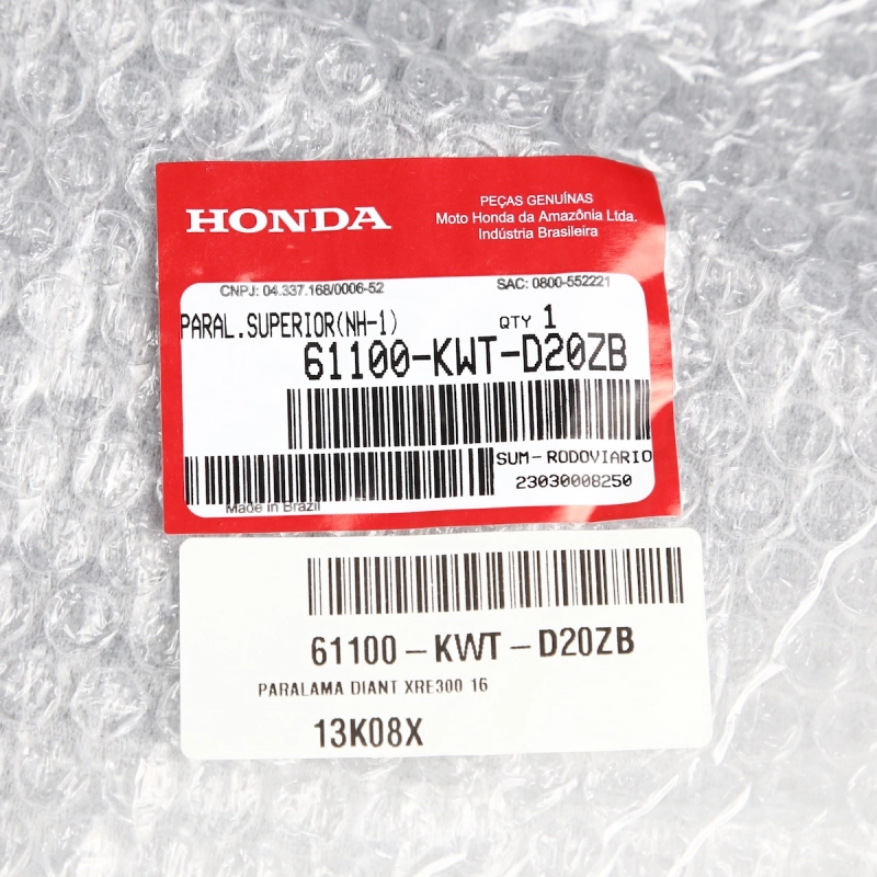 Paralama dianteiro bico original Honda, peça genuína utilizada na linha de montagem de fábrica. Responsável por proteger a parte dianteira da motocicleta contra respingos de água, lama e detritos, além de preservar o visual original e a integridade do conjunto frontal. Produto com excelente acabamento, alta resistência e encaixe perfeito, sem necessidade de adaptações.