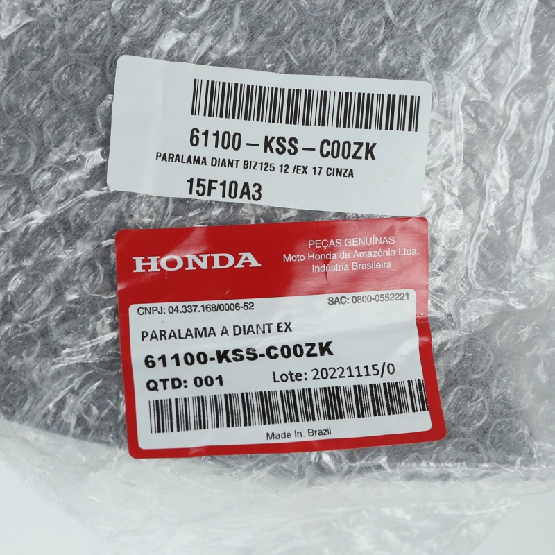 Paralama dianteiro original Honda, peça genuína utilizada na linha de montagem de fábrica. Desenvolvido para proteger a parte dianteira da motocicleta contra respingos de água, lama e detritos, garantindo maior segurança, conservação do conjunto e mantendo o padrão estético original da moto. Produto com encaixe perfeito, excelente acabamento e alta durabilidade.