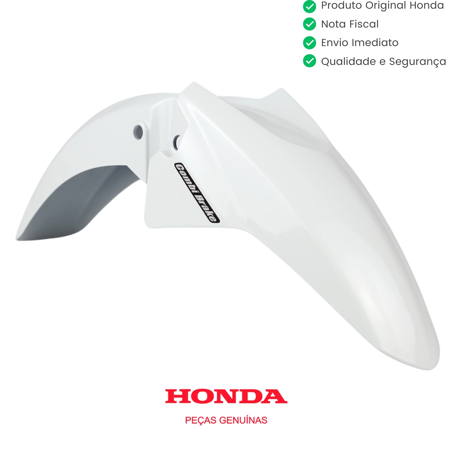 O paralama dianteiro original Honda é responsável por proteger a parte frontal da motocicleta contra respingos de água, lama e detritos da via, ajudando a preservar componentes e garantindo maior segurança durante a condução.