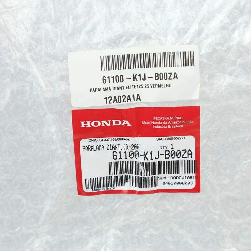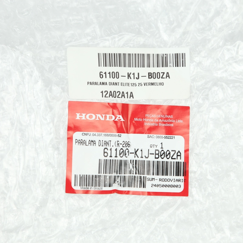 Paralama dianteiro original Honda, peça genuína fabricada pela própria Honda e utilizada na linha de montagem de fábrica. Produzido em plástico de alta resistência, tem a função de proteger a motocicleta contra respingos de água, lama e detritos, contribuindo para maior segurança, conservação e acabamento do conjunto dianteiro. Produto com encaixe perfeito e padrão de qualidade Honda.