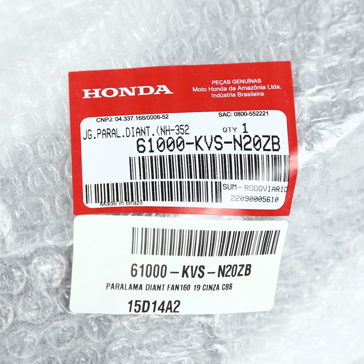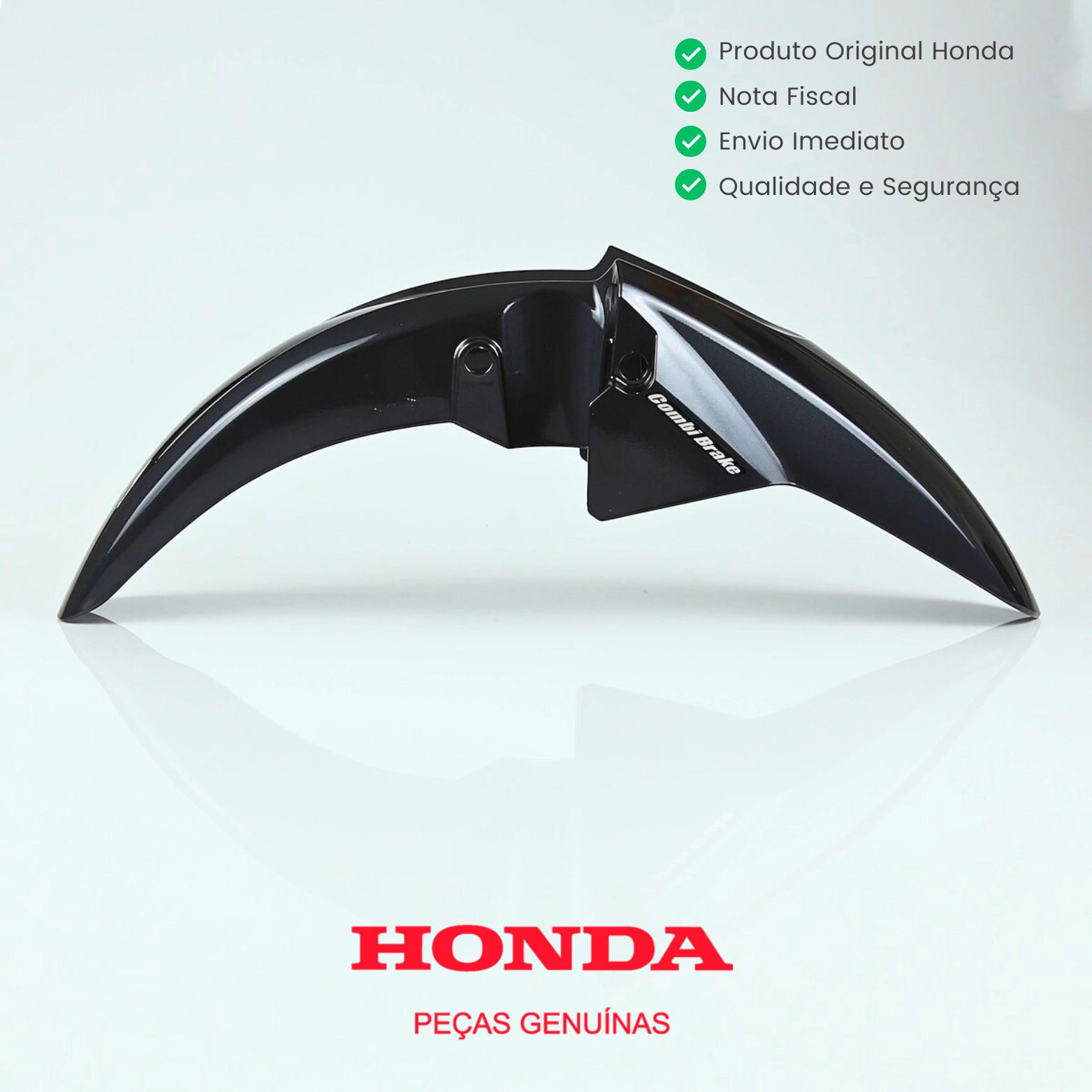 O paralama dianteiro original Honda é responsável por proteger a parte frontal da motocicleta contra respingos de água, lama e detritos da via, contribuindo para a preservação dos componentes e para a segurança durante a pilotagem.
