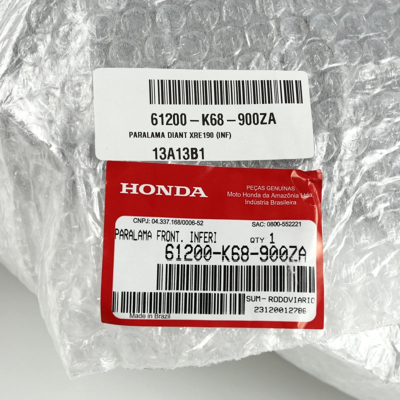 O Paralama Dianteiro Inferior Original Honda é uma peça essencial para a proteção da parte inferior da dianteira da motocicleta, auxiliando na redução de sujeira, lama e detritos arremessados pela roda. Produzido dentro dos padrões originais Honda, garante encaixe perfeito, alta resistência e preserva a estética e a originalidade da sua XRE 190.