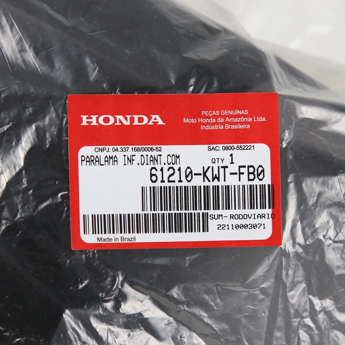 O Paralama Dianteiro Inferior Original Honda é uma peça essencial para a proteção da parte inferior da motocicleta, evitando o acúmulo de lama, água e detritos lançados pela roda dianteira. Produzido conforme os padrões originais de fábrica, garante encaixe perfeito, alta resistência e durabilidade, mantendo a segurança e a originalidade da sua moto.