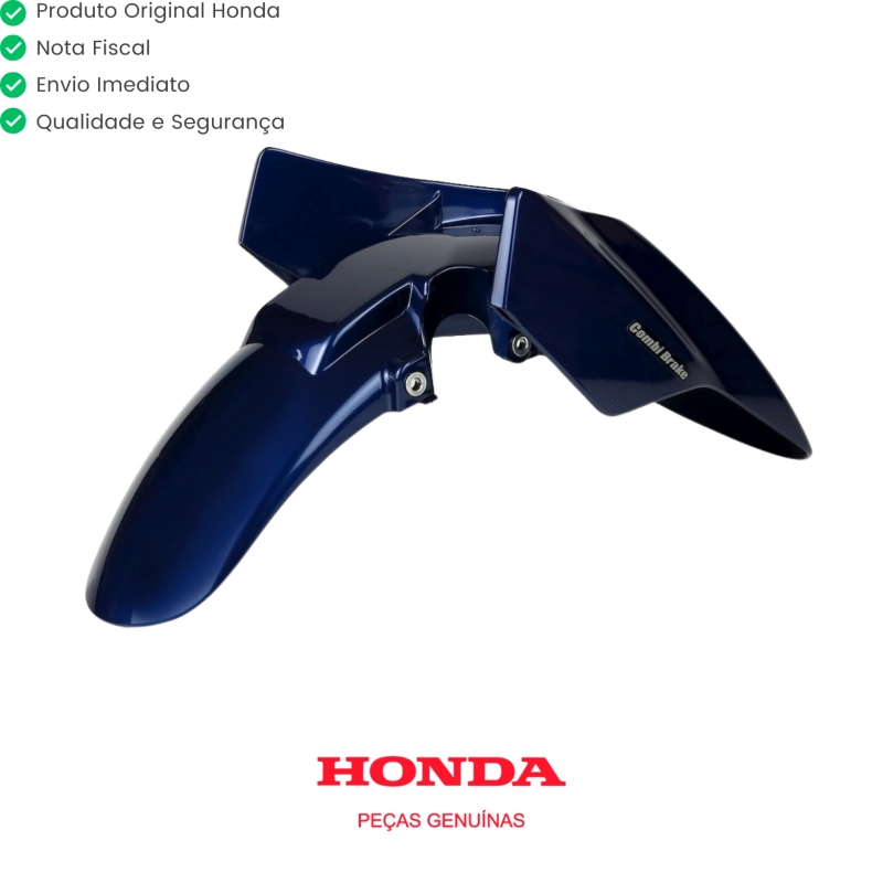 O paralama dianteiro original Honda é responsável por proteger a parte frontal da motocicleta contra respingos de água, lama e detritos da via, contribuindo para a conservação dos componentes, segurança na pilotagem e manutenção do visual original da moto.
