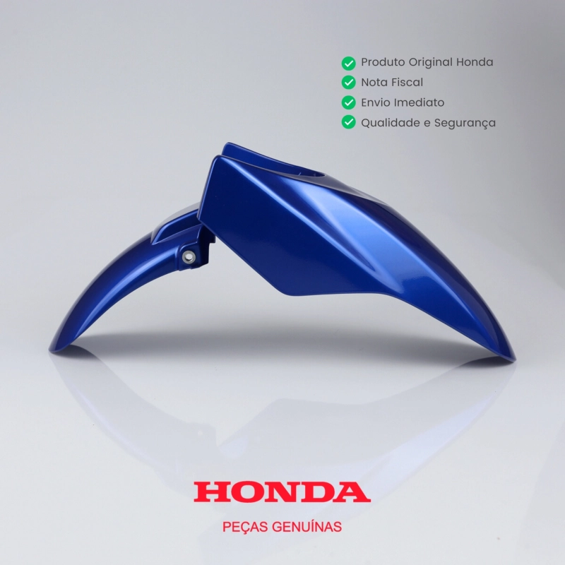 Paralama dianteiro original Honda, peça genuína utilizada na linha de montagem de fábrica. Desenvolvido para proteger a parte dianteira da motocicleta contra respingos de água, lama e detritos, garantindo maior segurança, conservação do conjunto e mantendo o padrão estético original da moto. Produto com encaixe perfeito, excelente acabamento e alta durabilidade.
