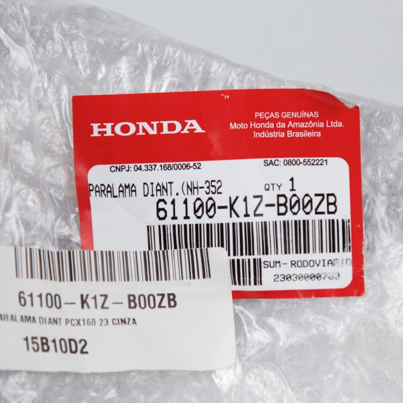 Paralama dianteiro original Honda, peça genuína utilizada na linha de montagem de fábrica. Desenvolvido para proteger a parte dianteira da motocicleta contra respingos de água, lama e detritos, mantendo a integridade do conjunto e o padrão estético original da PCX. Produto com encaixe perfeito, excelente acabamento e alta durabilidade.