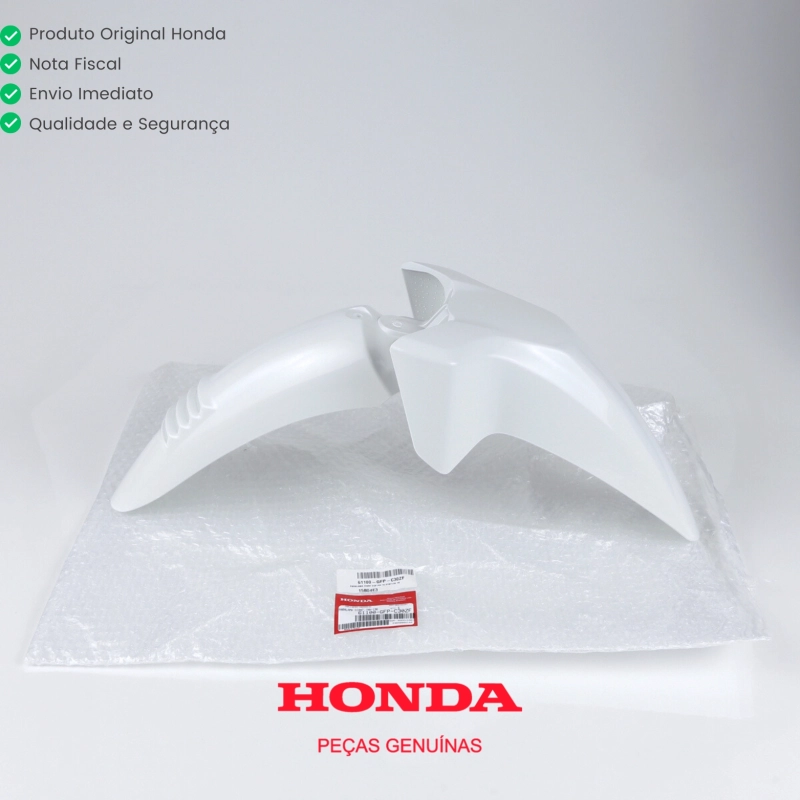 Paralama dianteiro original Honda, peça genuína utilizada na linha de montagem de fábrica. Responsável por proteger a motocicleta contra respingos de água, lama e detritos, garantindo melhor conservação e segurança durante o uso. Produto com encaixe perfeito, acabamento padrão Honda e durabilidade superior.