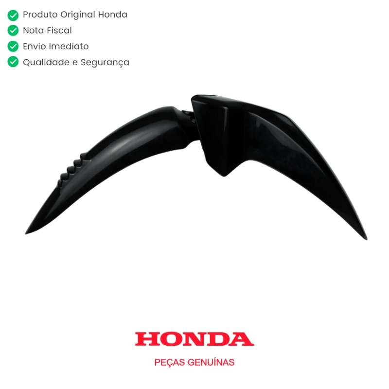 O paralama dianteiro original Honda tem a função de proteger a parte frontal da motocicleta contra respingos de água, lama e detritos da pista, ajudando a preservar componentes e manter o visual original da moto.