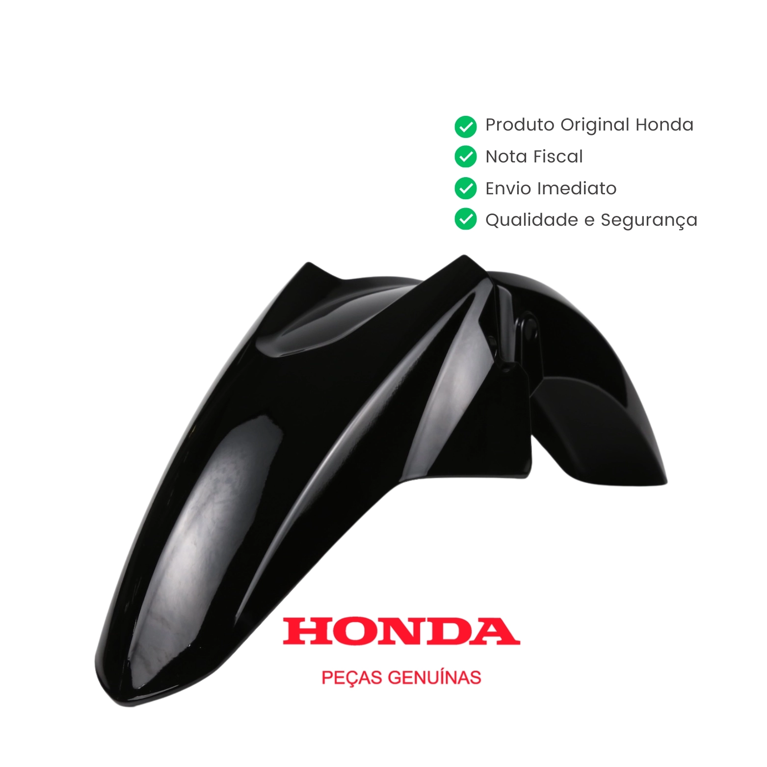 O paralama dianteiro original Honda é responsável por proteger a parte frontal da motocicleta contra respingos de água, lama e detritos da via, ajudando a preservar componentes e garantir segurança durante a condução.