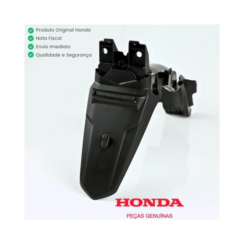 O Paralama Traseiro com Suporte de Placa Original Honda é uma peça essencial para a proteção e acabamento da parte traseira da motocicleta. Desenvolvido conforme os padrões originais Honda garante encaixe perfeito resistência e durabilidade mantendo a originalidade e a estética dos modelos CG Fan e CG Cargo.