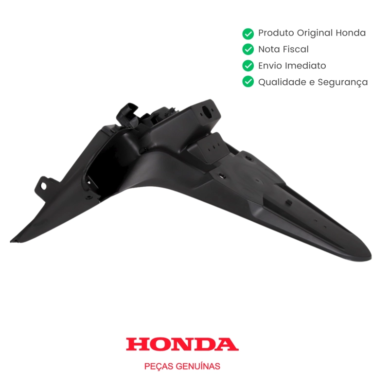 O paralama traseiro com suporte de placa original Honda é responsável por sustentar corretamente a placa, iluminação e parte do conjunto traseiro, garantindo segurança, fixação adequada e o padrão original de fábrica da motocicleta. Fabricado conforme as especificações da Honda, oferece encaixe perfeito, resistência e excelente acabamento, sem necessidade de adaptações.